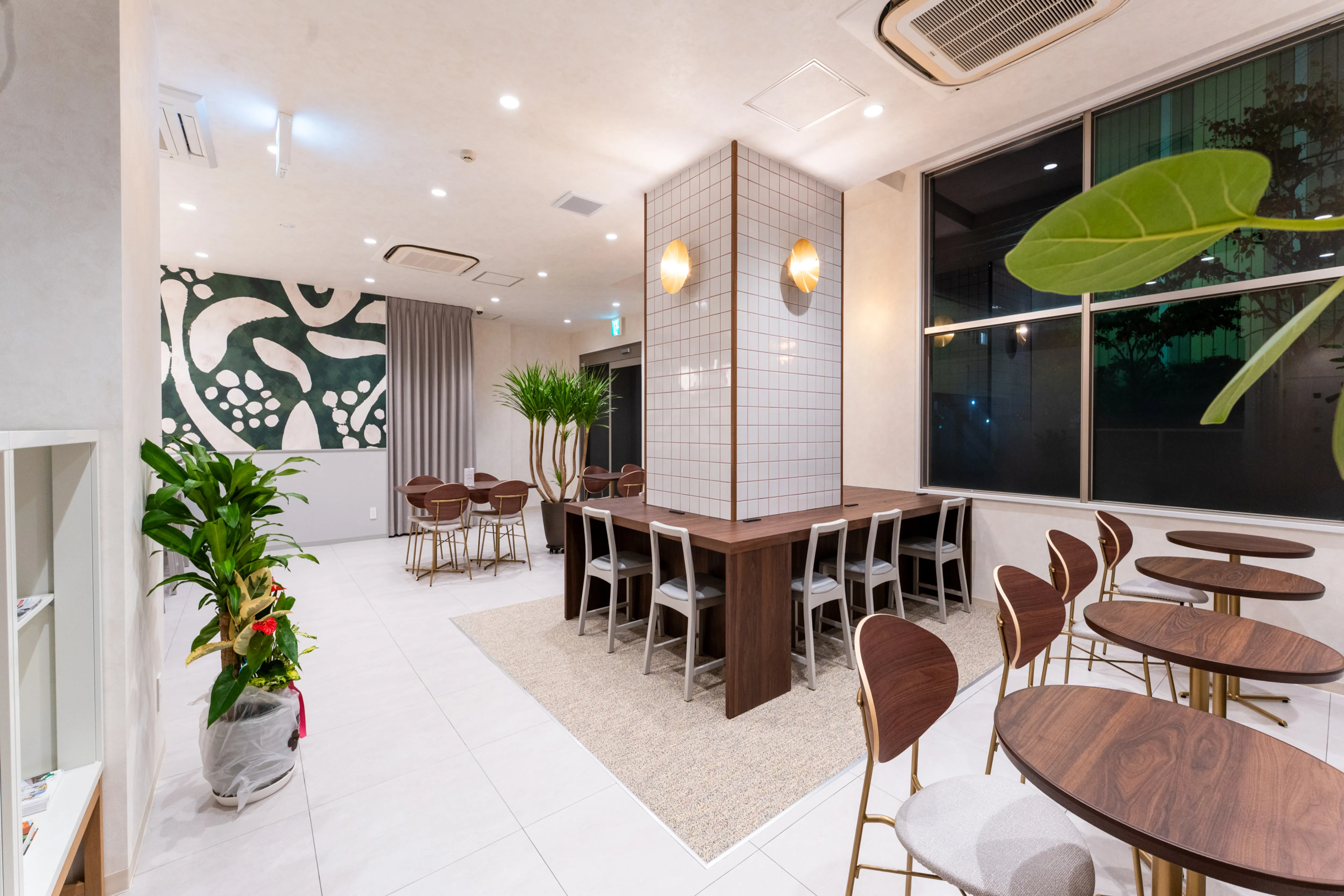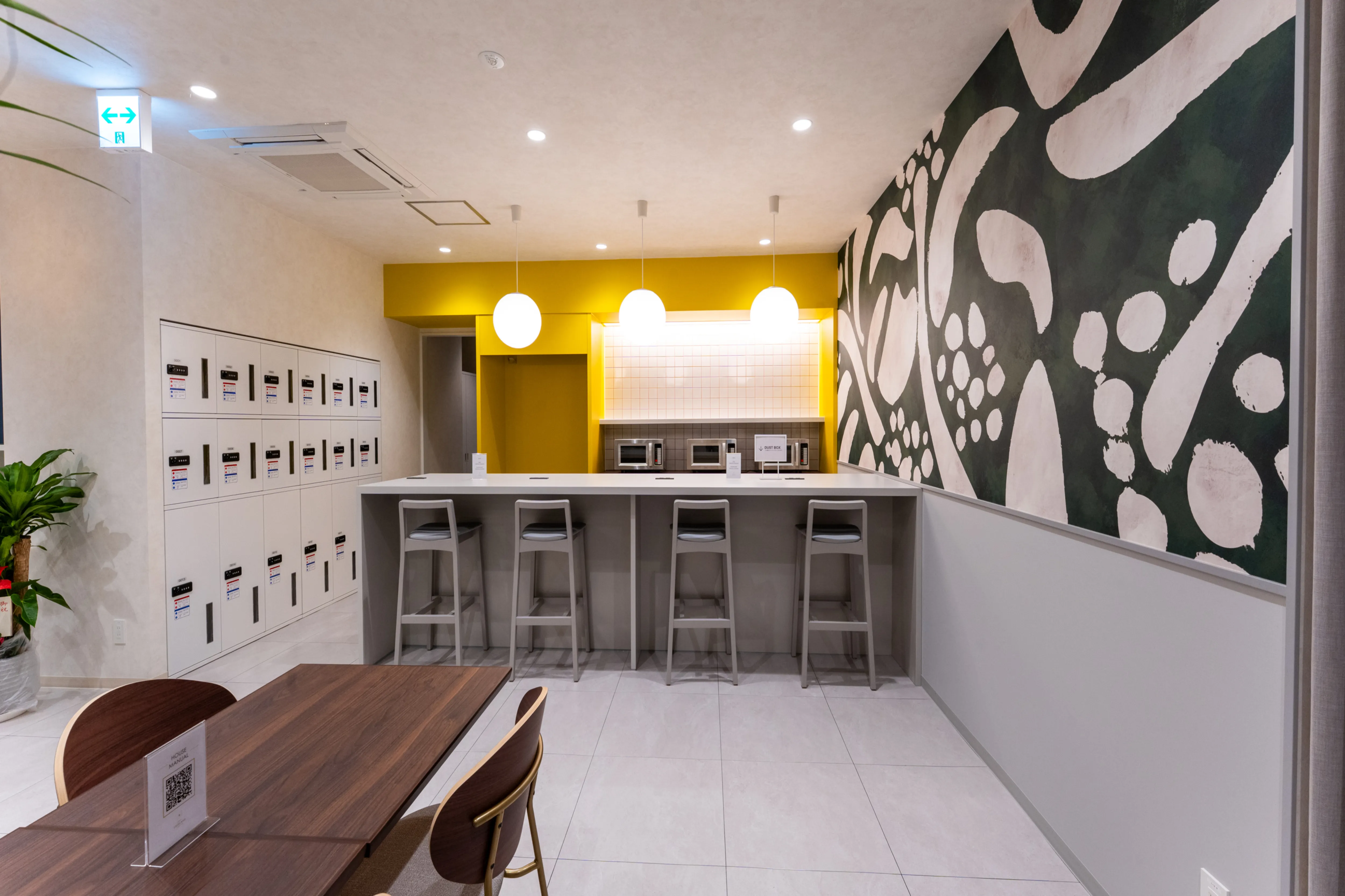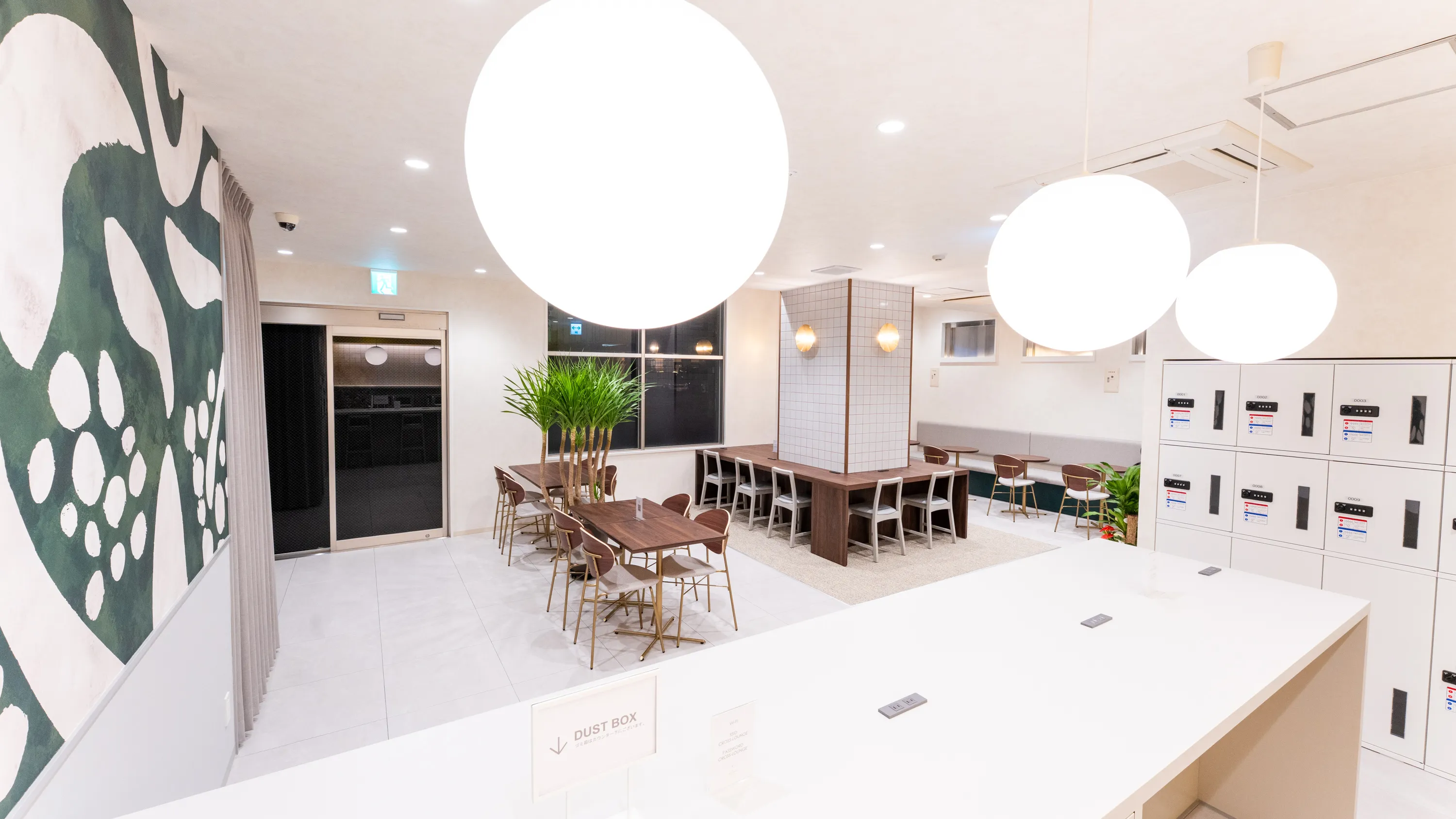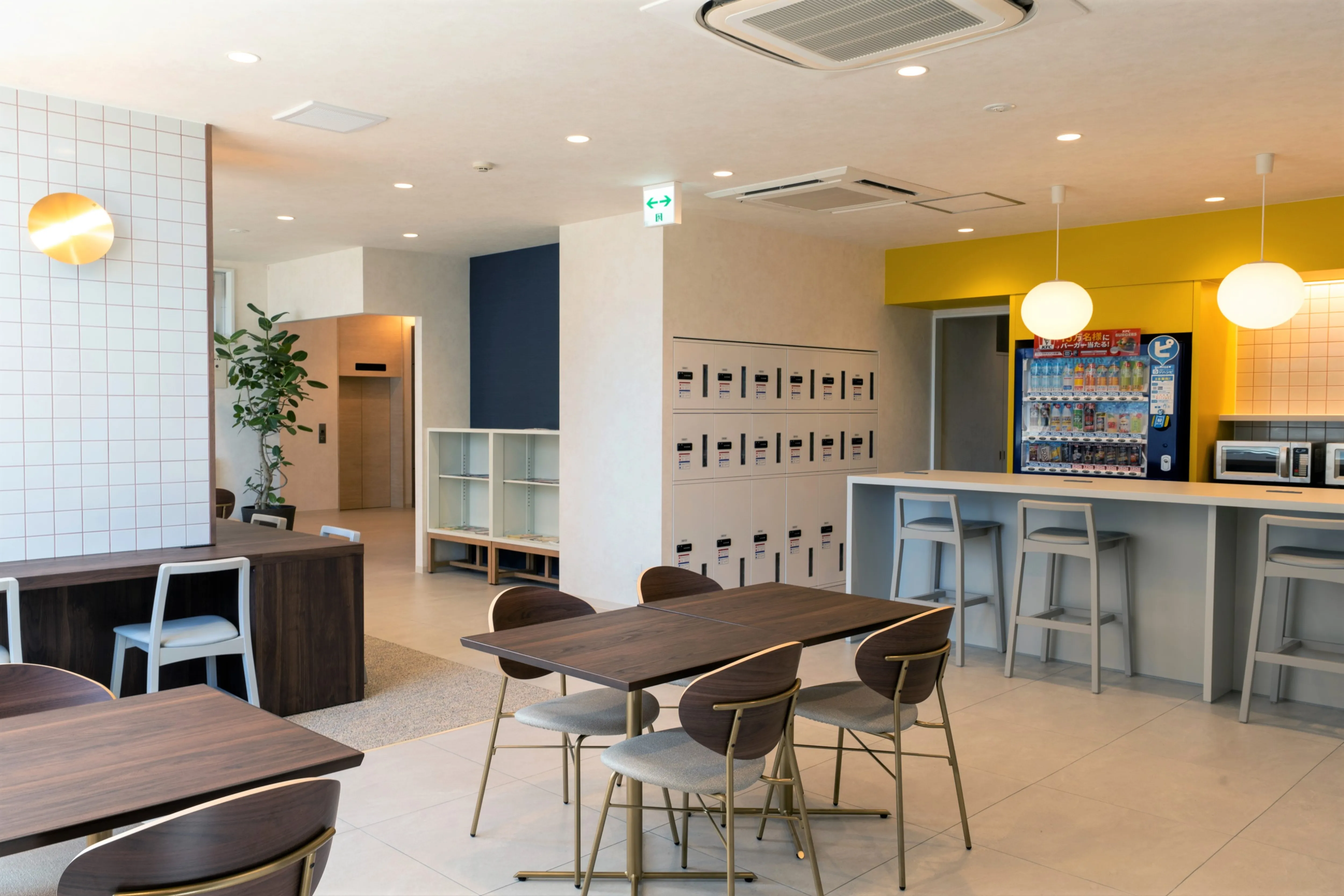 デザイン面では、無人運営でも温かみを感じられるよう、照明や素材の質感を丁寧に設計しました。「省人化=簡素」ではなく、「機能的でありながら居心地の良い空間」にすることで、宿泊者の心理的な満足度を高めています。 さらに、当ホテルでは、客室以外でも宿泊者同士が自由に過ごせるラウンジエリアを設け、個々の滞在に“選べる体験”を提供しました。一人で仕事をする、家族で食事をする、仲間と語らう──その時々のシーンに合わせた使い方ができるよう、家具の配置やゾーニングにも工夫を凝らしています。