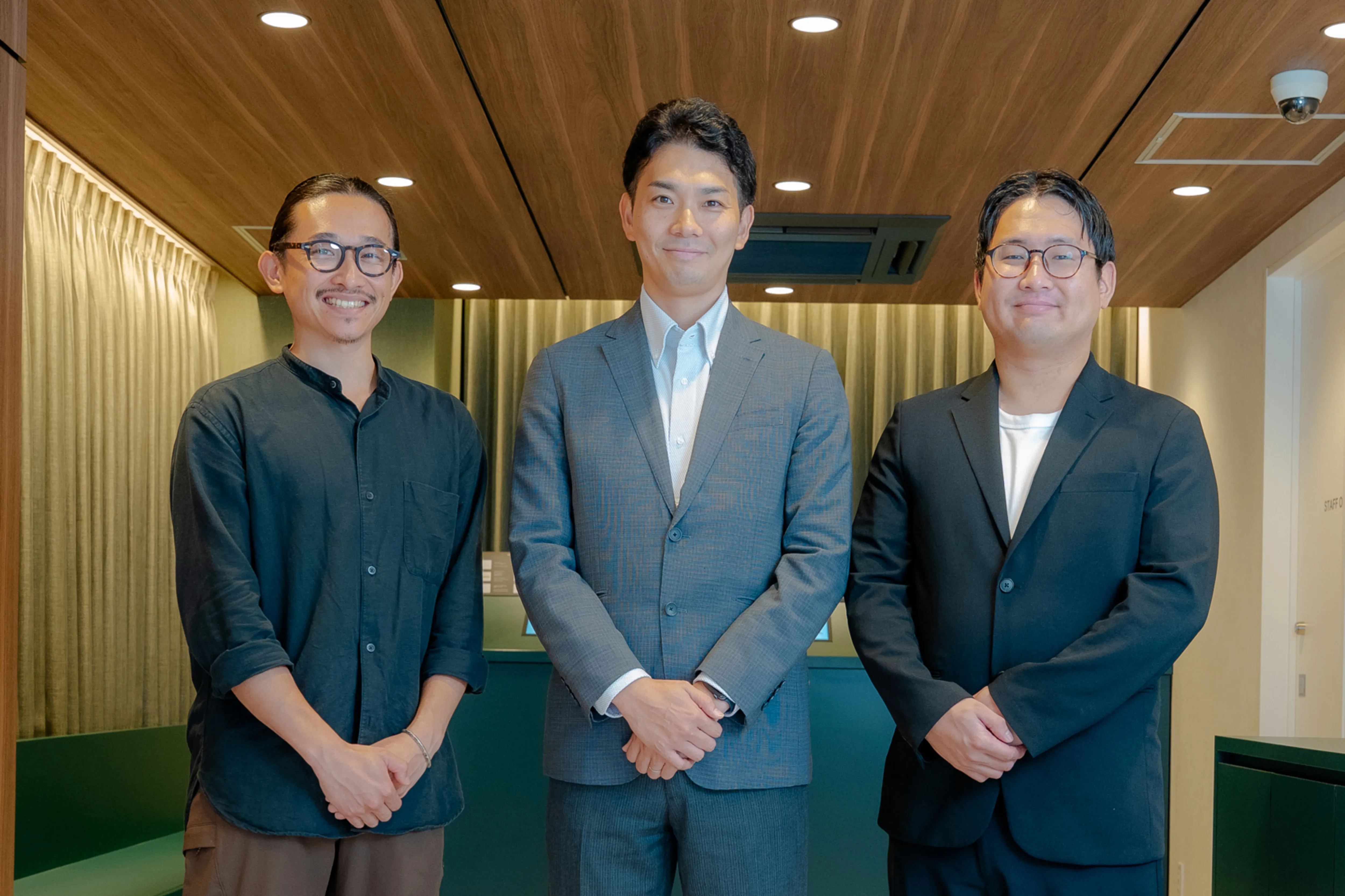 今回、プロジェクトを協業で推進した事業主・物件オーナーである不動産開発会社の加藤さん(株式会社南栄開発)、運営会社の澤田さん(株式会社リクリエ)、そして設計施工とデザインディレクションを手掛けた島津(株式会社サンゲツ)に、ホテル再生に込めた想いとこれからの展望を聞いた。