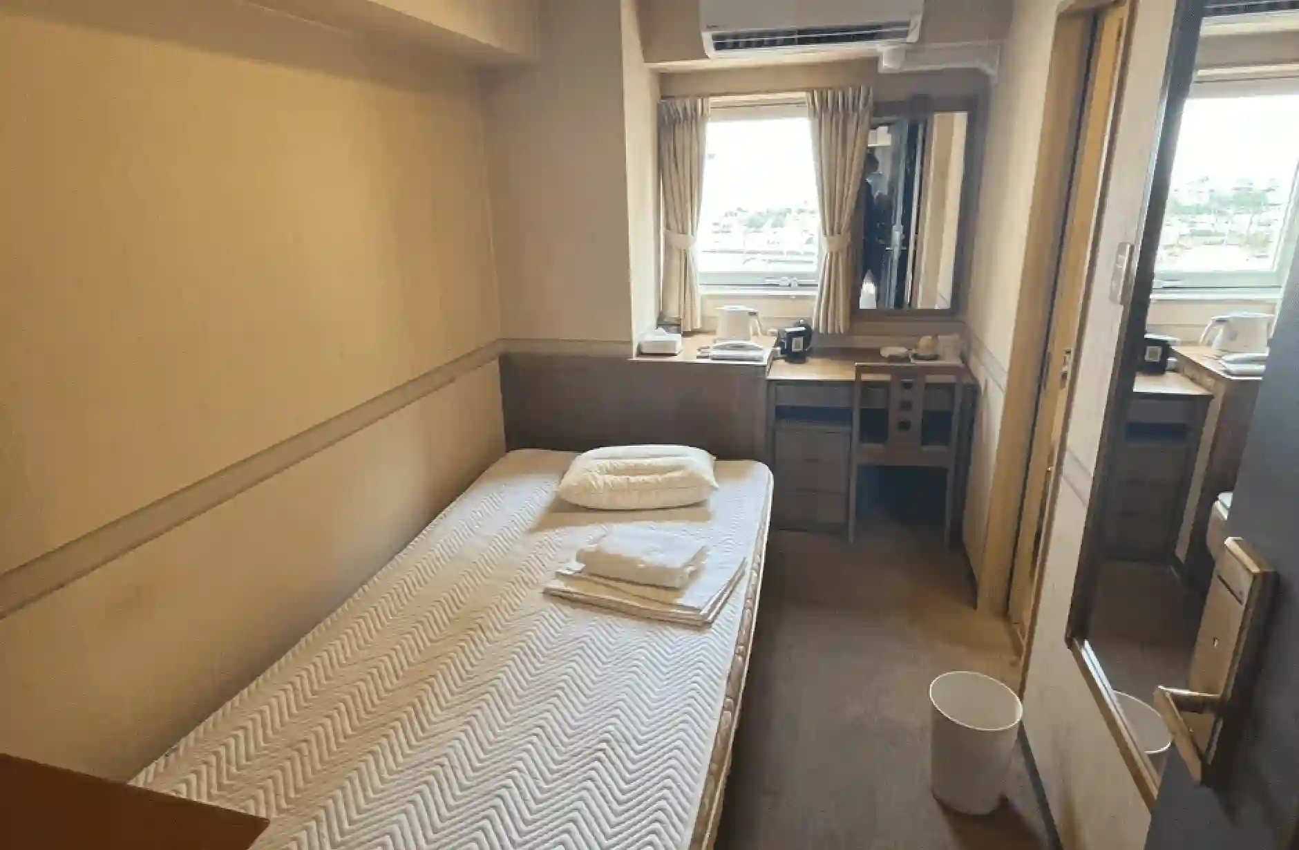 オープンから30年以上が経過し、内装の老朽化が進んでいました。 加えて、大きなライティングデスクや入口付近のミニバーが空間を圧迫。キャリーケースを置くと動線が塞がれてしまうなど、現代の宿泊スタイルには合わない窮屈なレイアウトとなっていました。