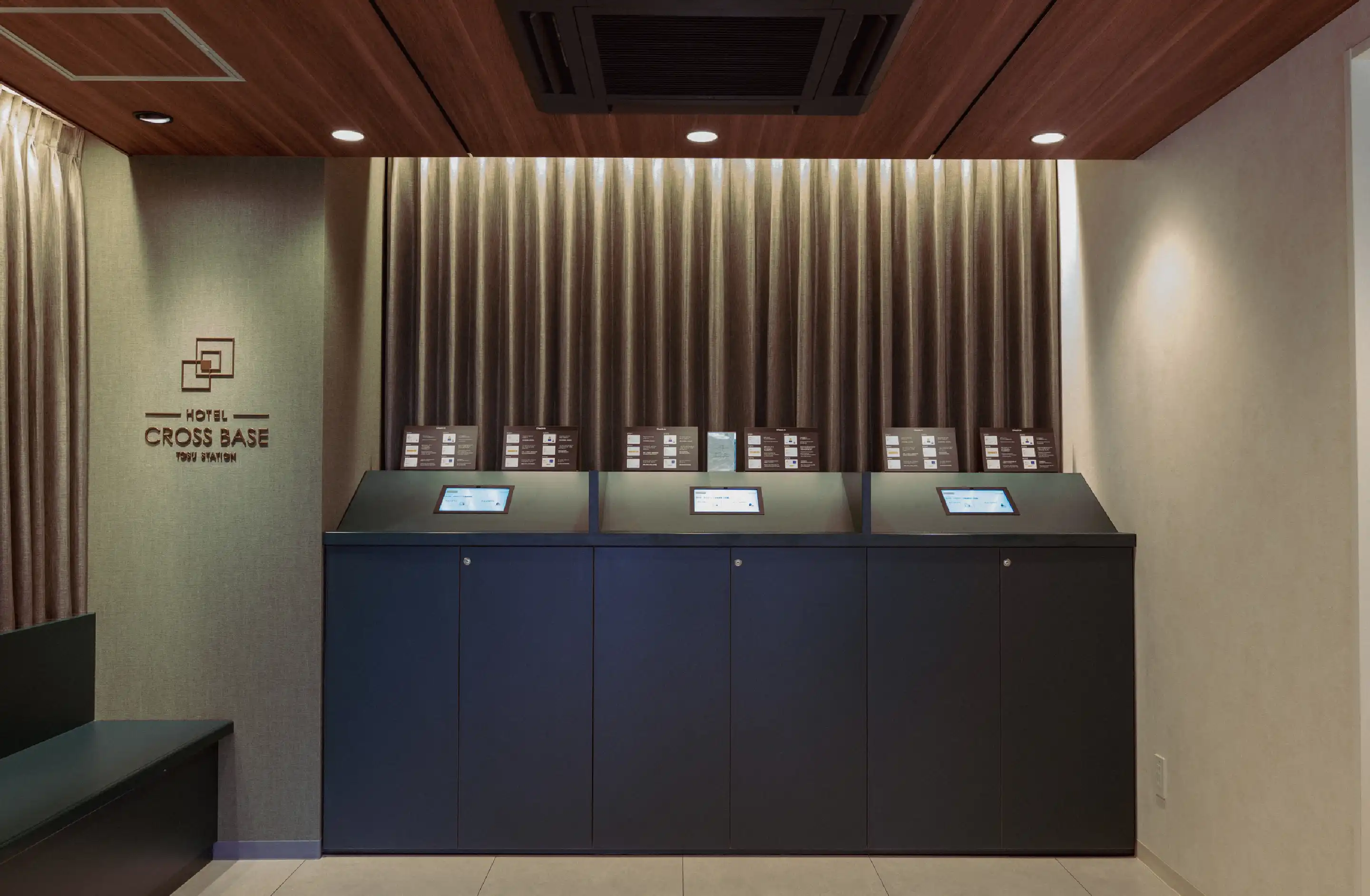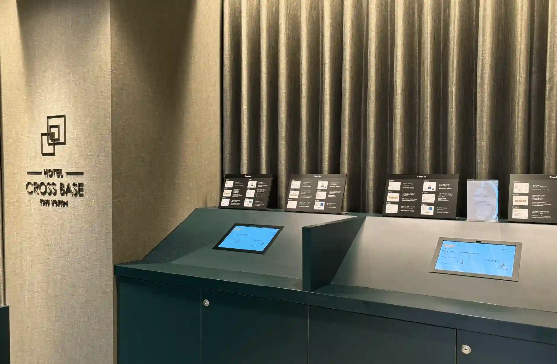 株式会社リクリエ様の無人システム導入に合わせ、専用カウンターを造作して機能美を追求しました。多言語対応のスマートな手続きにより、インバウンドのお客さまもストレスフリーにお迎えできます。 また、背面の腰窓はあえてカーテンで覆い、壁紙とトーンを合わせて意匠として昇華。間接照明の柔らかな光を当てることで、窓の存在を感じさせない、特別なおもてなしの空間を演出しました。