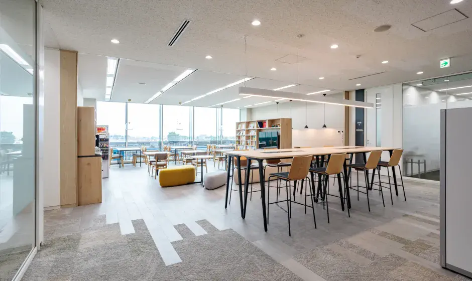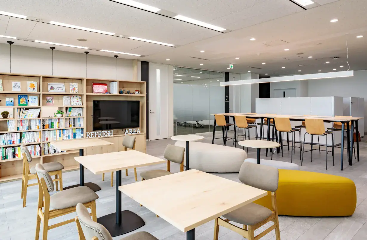 - 多様な休憩スタイル(集中、会話、食事など)に応える、フレキシブルな家具を配置したリフレッシュスペースを創出し、エンゲージメントの向上を図りました。