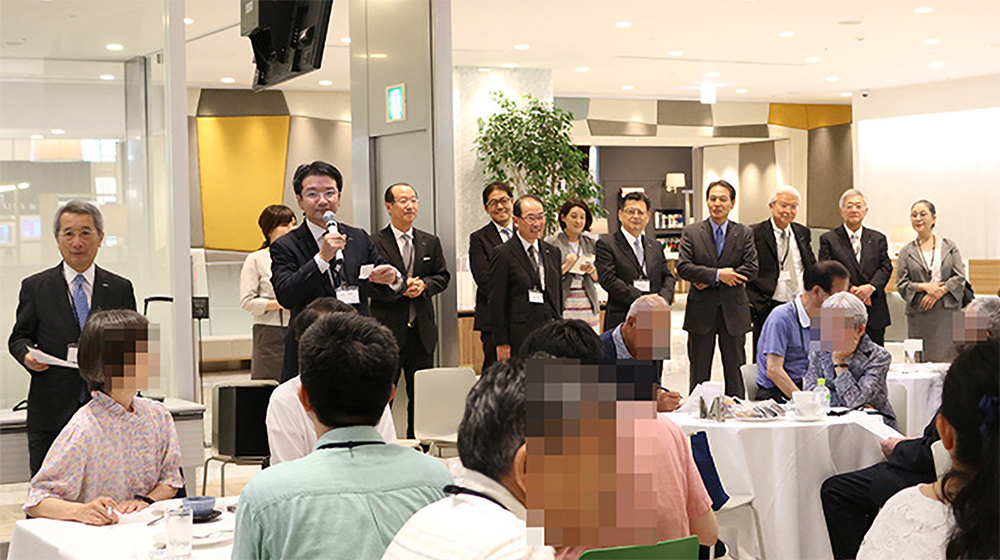 説明会の後は、サンゲツ品川ショールームの見学会に続き、株主の皆さまと取締役が同じテーブルを囲み、ご歓談いただきました。短い時間ではありましたが、株主さまにサンゲツをより深く知っていただき、株主さまより直接ご意見をいただくことのできる貴重な機会となりました。