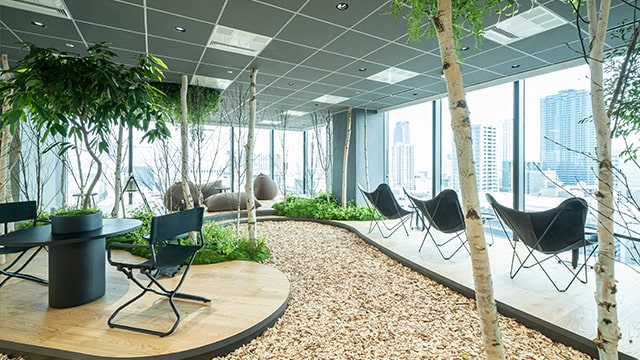 全社的な取り組みとしては、「職場環境改善プロジェクト」を立ち上げ、社員主体でオフィスのあるべき姿の具現化を目指しており、北関東支社においては、回遊式の導線によるコミュニケーション創出といったアイデアを取り入れたリニューアルを検討しています。今後も、PARCsで培ったABWとウェルビーングを重視したオフィス環境を順次横展開し、社員のやりがいや創造性の向上を図ります。