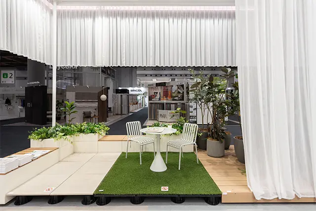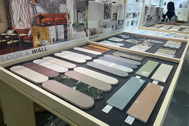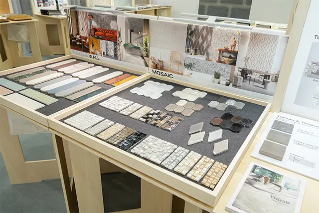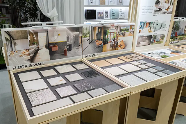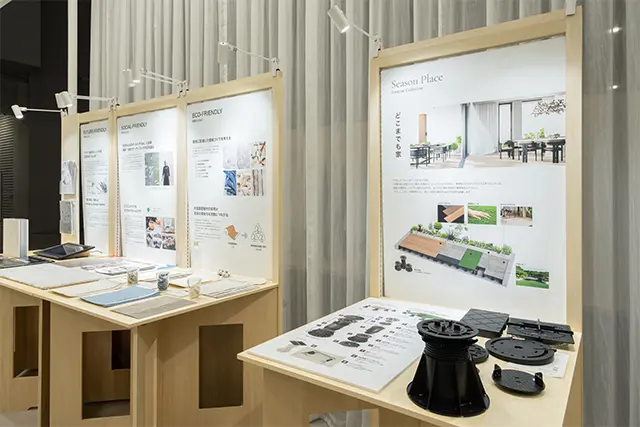 展示商品:Vivienteセラミックタイル、SeasonPlaceエクステリア商材各種