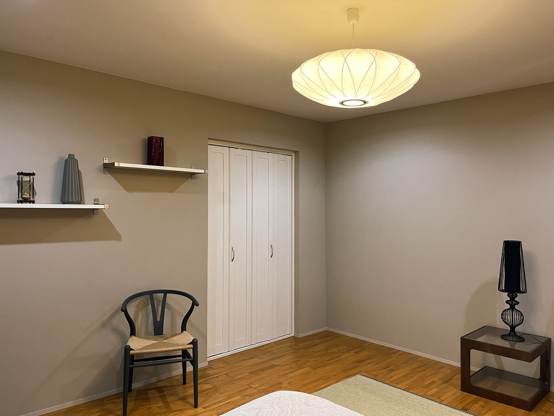 ゲストルームにも、バブルランプやYチェアなどの長きにわたって愛されているアイテムや、瞳子がセレクトした小物がセンス良く飾られています。