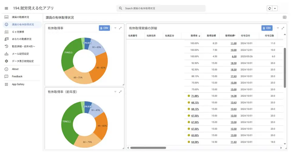 「就労見える化アプリ」は、社員一人ひとりの勤務時間や年次有給休暇の取得状況を可視化するアプリです。マネージャーが部下の勤怠状況を把握するツールはあるものの、積極的に情報を取りに行く必要があったため、より手間なく簡単に把握できるよう、部署のマネジメント支援ツールとして開発しました。