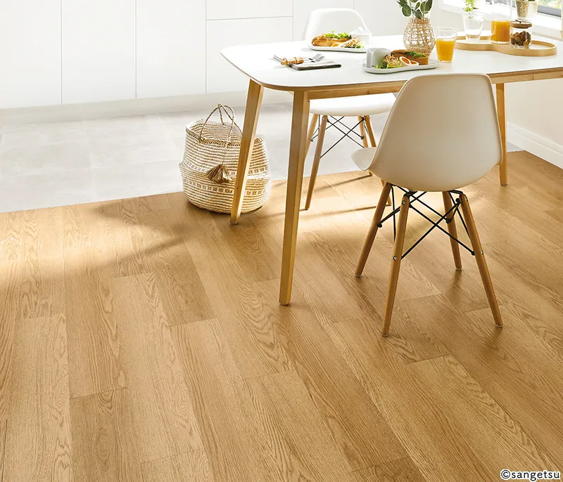 また、さまざまな木目を表現した豊富なデザインを選べることもメリットの1つです。本物の木材を使用する場合と比べてコストパフォーマンスにも優れており、お手頃な価格で導入できます。新築はもちろんのこと、リフォームにも適した床材です。