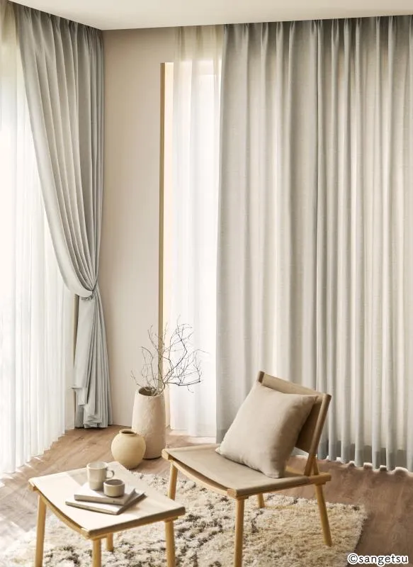 ドレープカーテンとレースカーテンの併用は、昼夜を問わず使い勝手が良い組み合わせといえます。お部屋の日当たりや窓の場所を考慮して、遮光・遮熱・防音といった機能を検討してみるのも1つの考え方です。