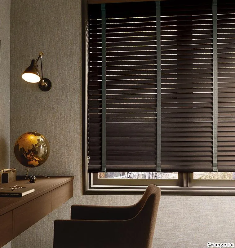桐の無垢材を使用したウッドブラインドです。天然の木の質感が、落ち着いた上質な空間づくりに適しています。木の素材感をいかしたインテリアにもよく馴染むでしょう。
