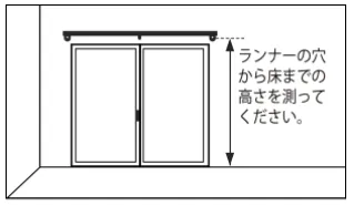次に、仕上り丈を測定します。掃き出し窓の場合、ランナーの穴から床までの高さを測りましょう。実際の仕上り丈を算出するには、次の計算式を用います。