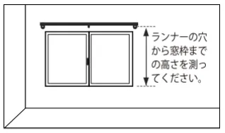 腰窓の場合は、ランナーの穴から窓枠までの高さを測ります。その上で、次の計算式に当てはめて仕上り丈を算出しましょう。