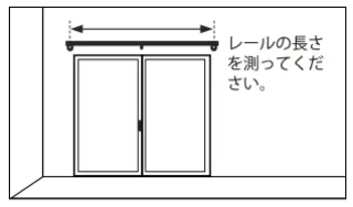 カーテンの仕上り巾を測る際には、必ずカーテンレールの長さを測ります。カーテンレールが取り付けられている状態で、端から端までの長さを測定しましょう。
