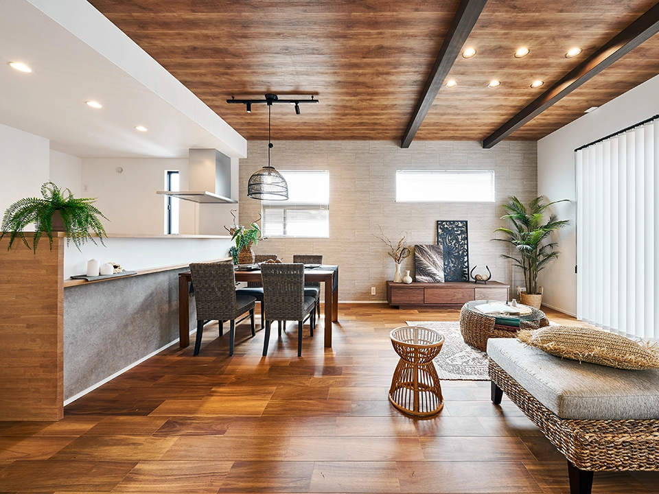 心を動かし、解きほぐす美しいリゾートへの旅には、非日常との新鮮な出会いがあります。そんな感動を何気ない日常でもカタチに。温かみのあるアースカラーが心を癒す「アジアンリゾート」。ラタンのインテリアと相性の良い木目調を基調に温かみのある空間に。