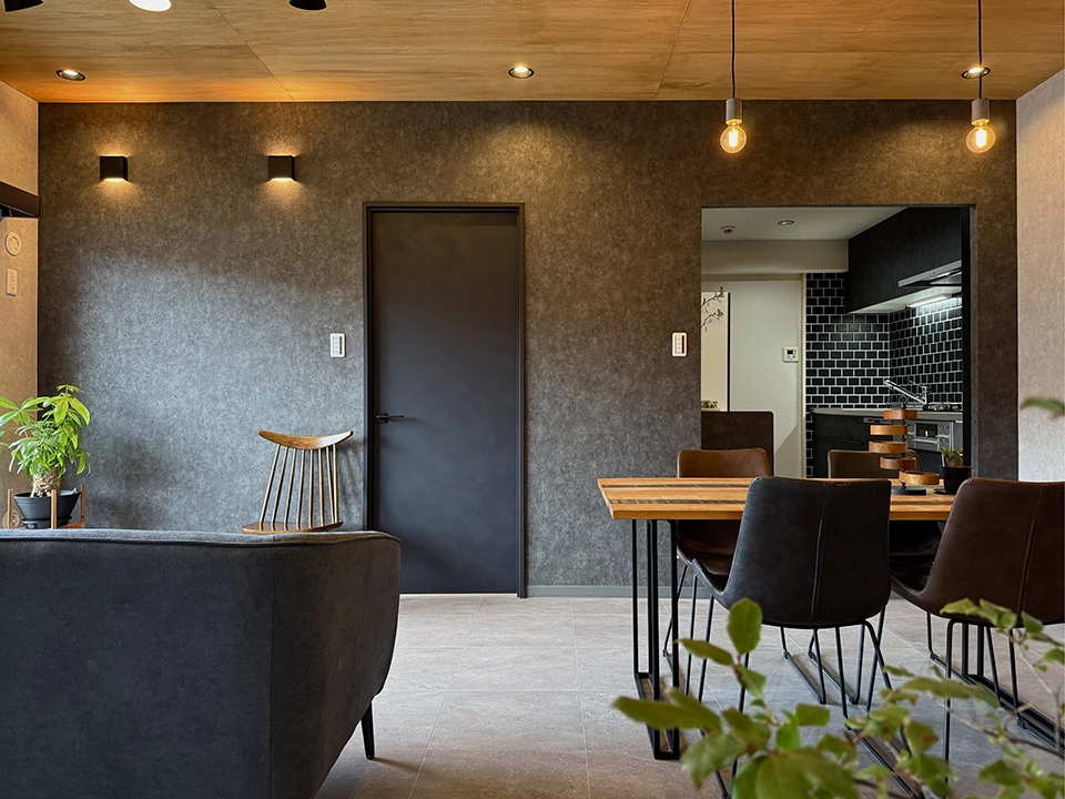 マンションリノベ物件です。今回は間取りの変更を行わずに内装の仕上げだけで、どこまでカッコよく仕上がるか、ここなら住みたい!と思ってもらえるか、そこに挑戦しました。