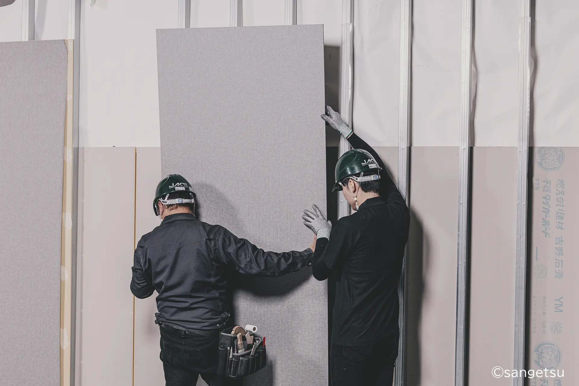 【施工風景】壁紙の下地処理(パテ処理)不要、壁紙化粧ボード「イノパネル」が実現する、「工程を減らす」という新しい現場のカタチ