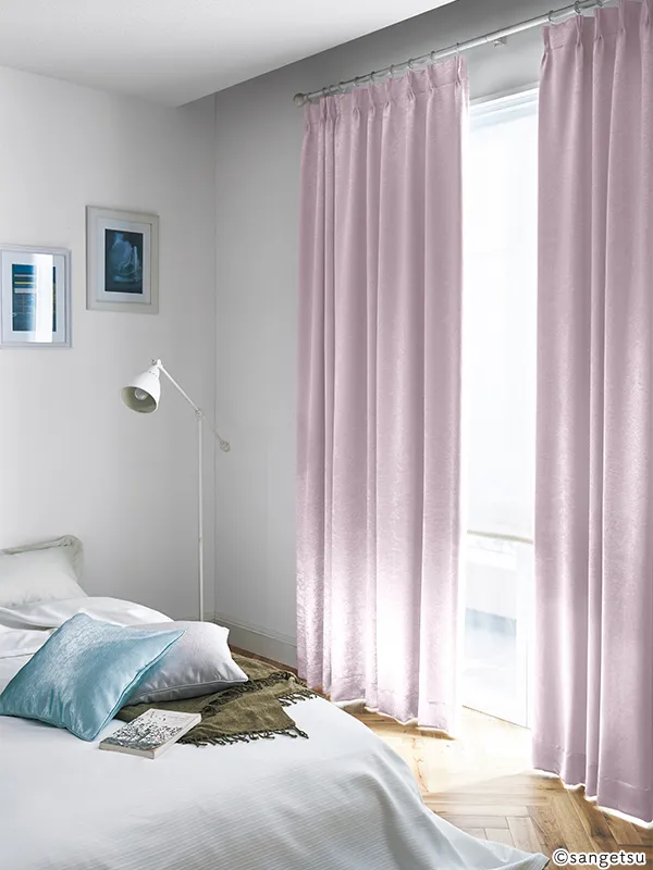 光沢感のある暗幕生地に、しわ加工を施したカーテンです。複雑に屈折する光が繊細な表情を魅せます。遮光2級の透過率を備えており、寝室に取り入れるカーテンとしてもおすすめです。ウォッシャブル対応のため、定期的に丸洗いしてカーテンを清潔な状態に保ちやすいこともメリットといえるでしょう。