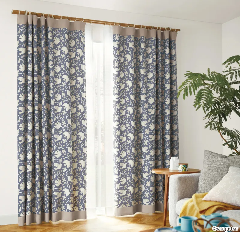 大人っぽい北欧カラーが可愛い、鳥柄をあしらったカーテンです。柄入りながらも落ち着いたテイストのため、木質の家具などにもよく合います。ウォッシャブル対応でお手入れしやすいことに加え、防炎機能が備わっていることから高層マンションのお部屋にもおすすめです。透過率は遮光2級のため、日差しが気になるお部屋や寝室にもお使いいただけます。