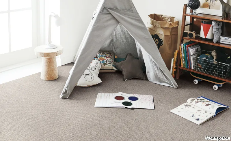 繊維でできたロール状の床材です。踏み心地の良さや滑りにくさに加え、階下へ伝わる音が軽減される効果が期待できます。また、繊維が細かなほこりなどを取り込む「ダストポケット効果」により、ハウスダストが空気中に舞い上がりにくいこともロールカーペットの特長の1つです。繊維ならではの上品な質感や踏み心地の良さを重視したい方は、ロールカーペットを床材に選んでみてはいかがでしょうか。