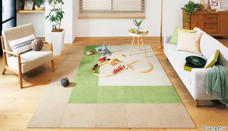 たとえば、お子さまと一緒に過ごすリビングのうち、おもちゃなどが置かれているスペースにラグを敷くといった活用方法が考えられます。お子さまの成長に合わせて柔軟に音対策を講じたい方は、ラグを活用してみてはいかがでしょうか。