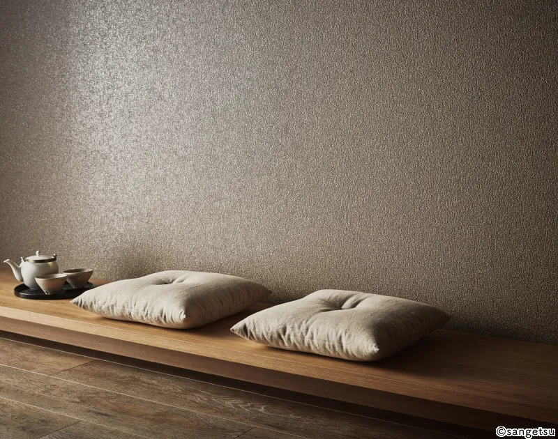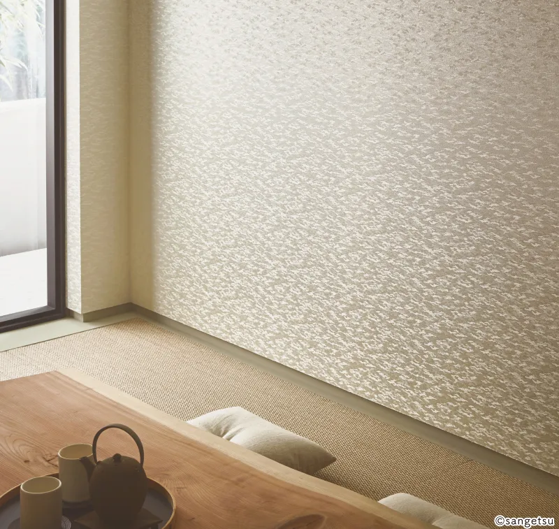 天然素材の珪藻土や鉱石を使用した壁紙です。落ち着いた色合いながら、光の当たり方によって異なる表情を見せてくれます。砂壁のようなニュアンスが感じられるため、伝統的なスタイルの和室にもおすすめです。