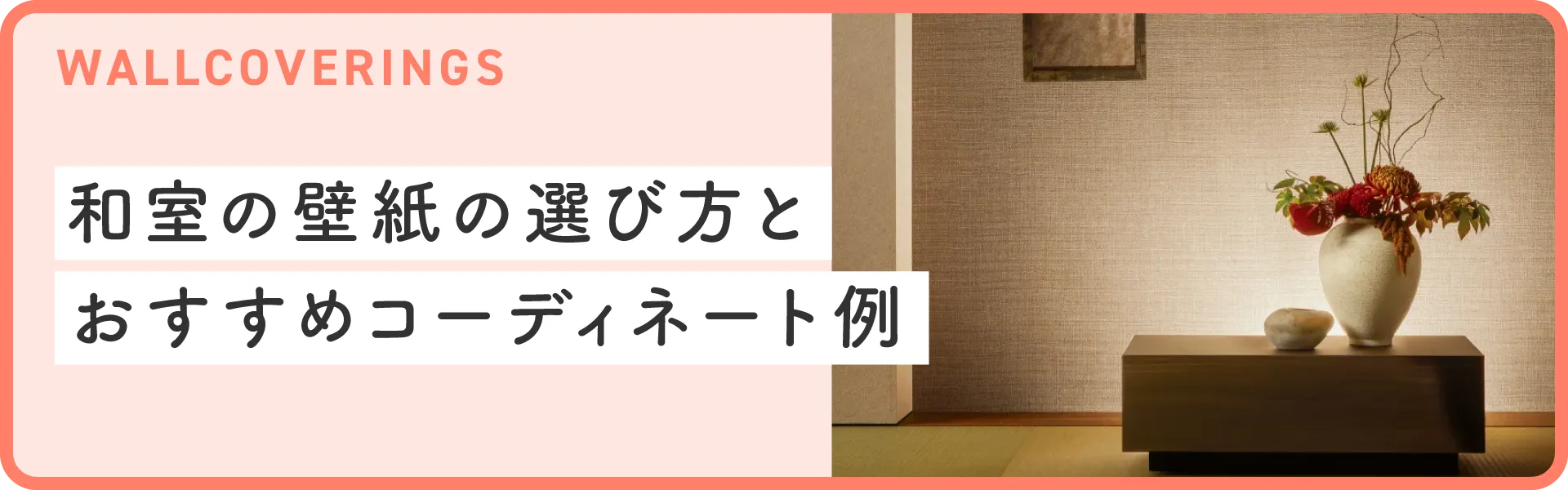 和室におすすめの壁紙と、お部屋のコーディネート例を紹介します。お部屋のイメージづくりと壁紙選びに役立ててください。