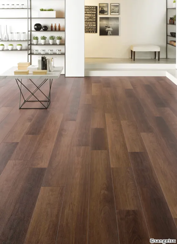 温かみのある木目調の床は、住宅の内装材として人気があります。重厚感や高級感のある空間づくりを目指している方にとって、ウォルナット柄の床は有力な選択肢の1つになるでしょう。
