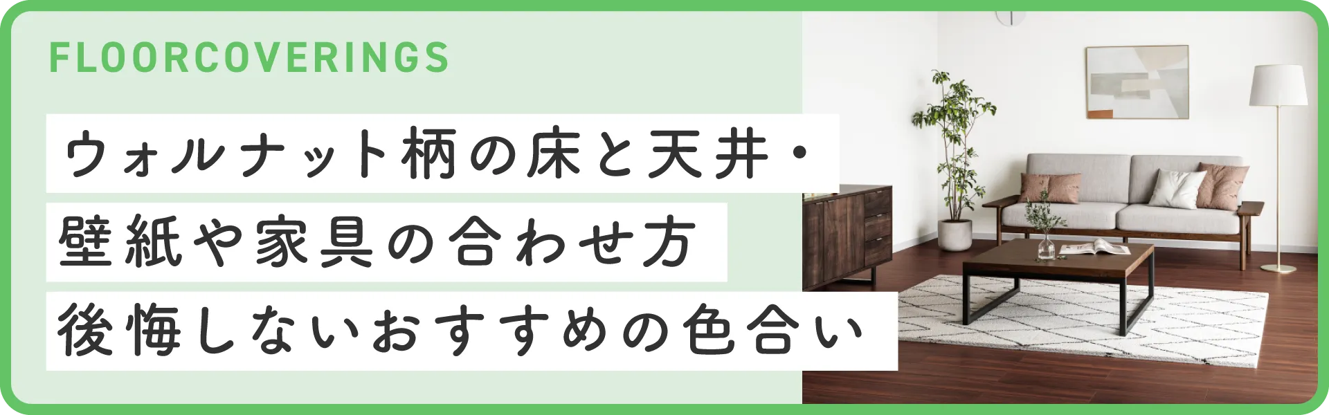ウォルナット柄の床と天井・壁紙や家具の合わせ方|後悔しないおすすめの色合い