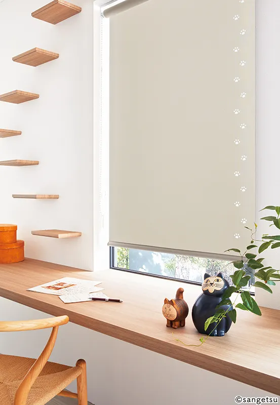 猫の足跡デザインがかわいいロールスクリーン