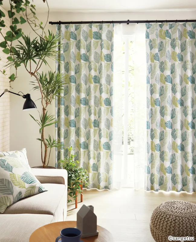 さわやかなリーフパターンのカーテンです。お部屋を明るく華やかな雰囲気に彩ってくれます。シンプルで洗練された柄のため、北欧テイストのお部屋にも溶け込むでしょう。カーテンのほか、同生地でロールカーテンやクッションなども仕立てられるので、お部屋をトータルコーディネートしたい方にもおすすめです。
