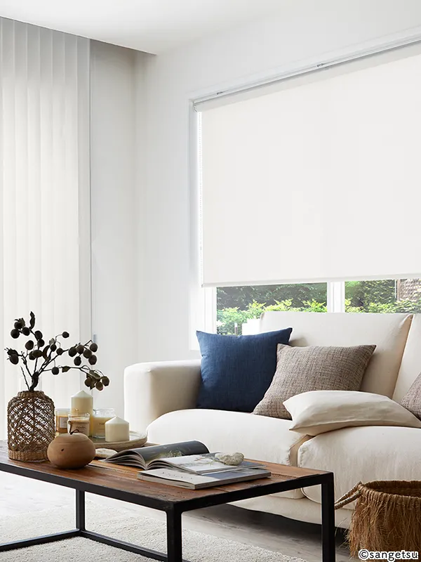 コットンライクな素材感が魅力の無地ロールスクリーンです。シンプルで洗練された雰囲気を醸し出しつつ、無機質になりすぎない柔らかなニュアンスが加味されています。