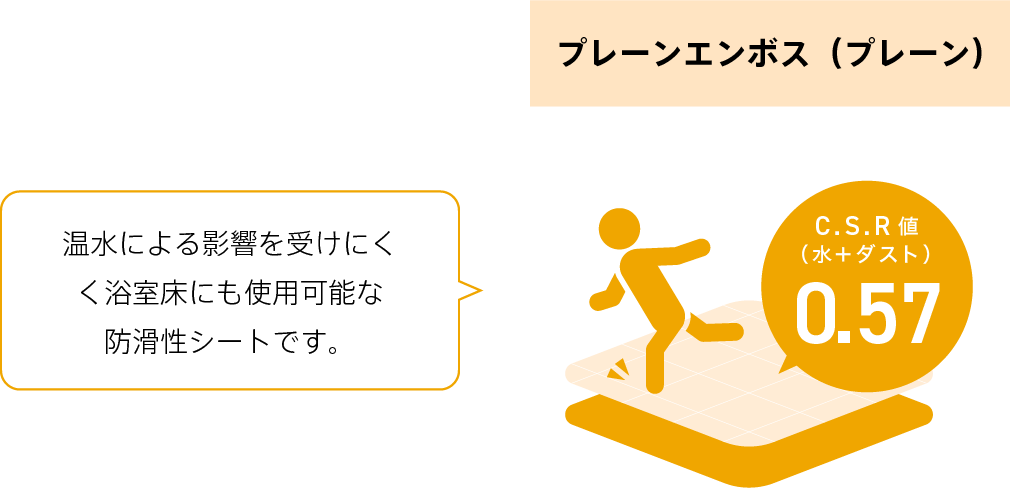 スロープや浴室床には、防滑性に優れたプレーンエンボス(浴室使用可能タイプ)がおすすめです。