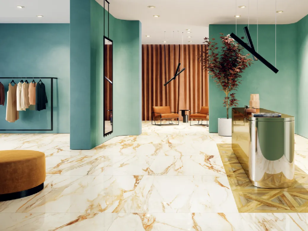 白いマーブルの輝きにドラマチックな模様が映える「スプリーム トレジャー」。存在感が際立つ大判サイズは、大理石柄タイルの新たなスタンダードに。自然が創造したエレガントなマーブル模様が、ラグジュアリーで洗練された空間の価値を高めます。