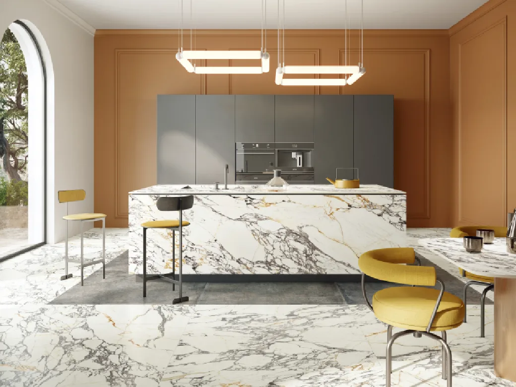 大理石の不朽の美しさへの賛辞として、ダイナミックに表現した「スプリーム エボ」。光り輝く白から暖かく華麗な黒まで、美しく磨き上げられた艶やかな表情は、インテリアデザインを引き立て、優美で気品ある空間を演出します。