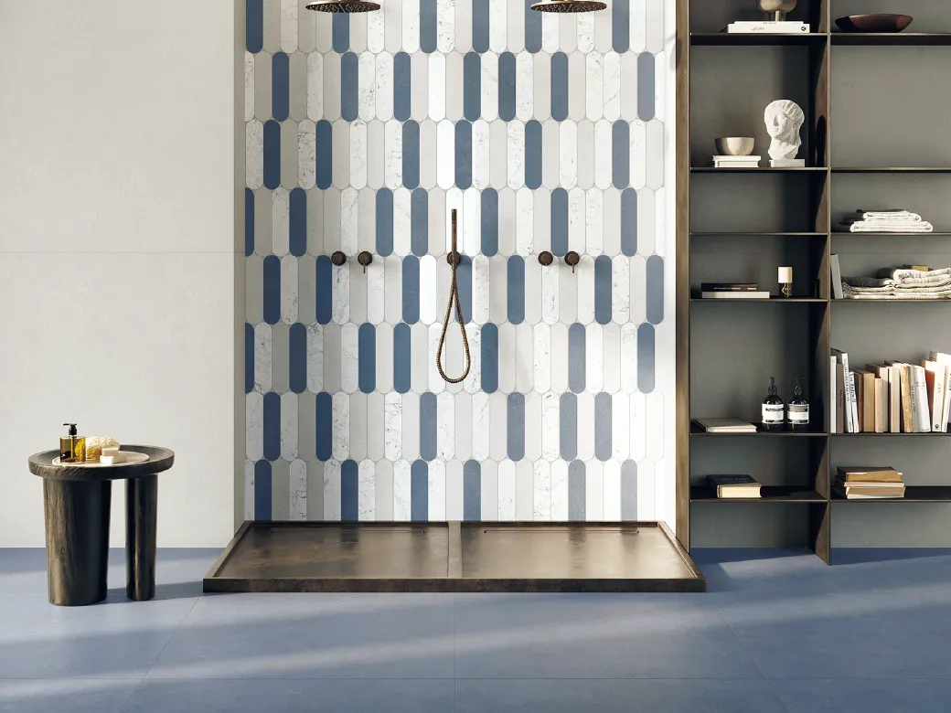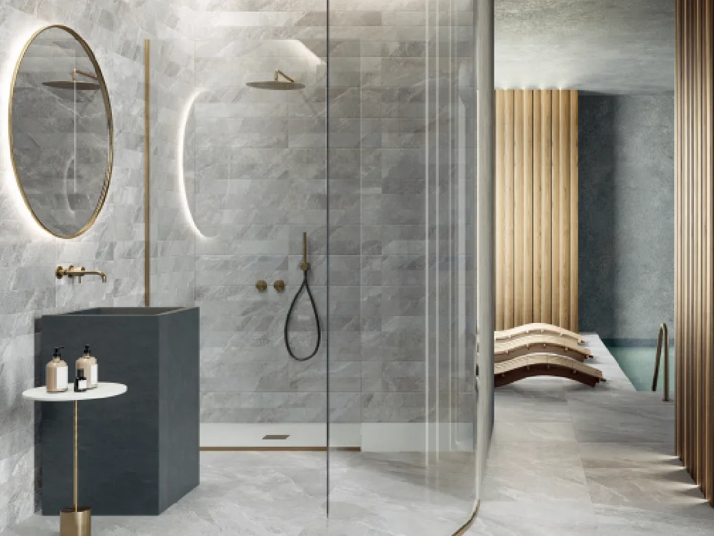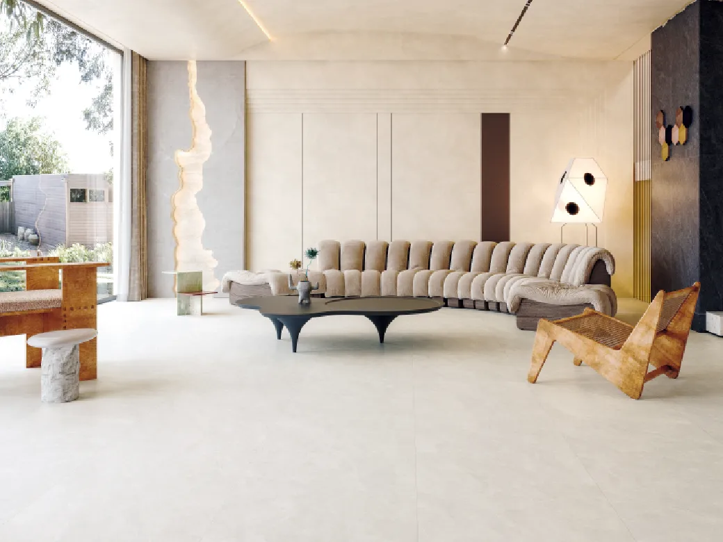 ロンドンの歴史的建造物に見られるイギリス南部ポートランド島産の大理石がモチーフ。光のあたり方で立体的に見える表情は、最新3Dテクノロジーによるものです。大判タイルを活かした伸びやかでランダムなデザインは、空間デザインの幅を広げてくれます。