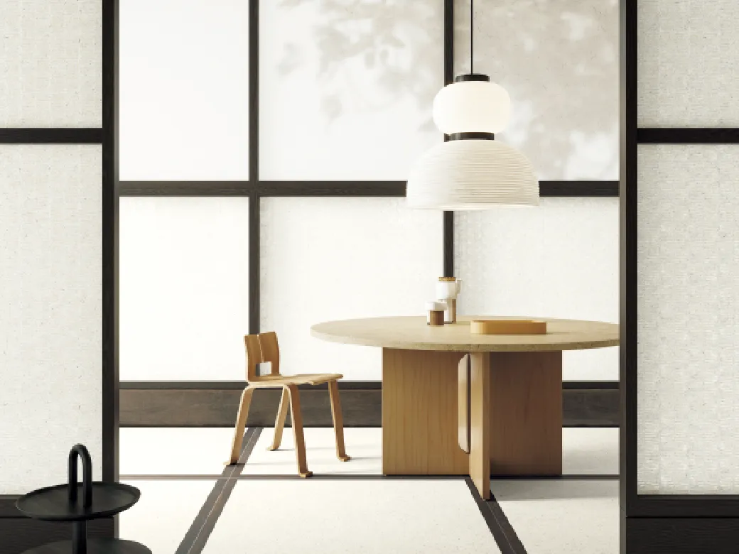 天然素材を巧みに使い洗練された装飾を織りなす、和紙の美しさを表現した「ワシ」。軽やかさを湛えたミニマリズム、不完全さが究極の美しさをそのままに、あらゆる要素がバランス良く調和した、唯一無二の空間を創出します。