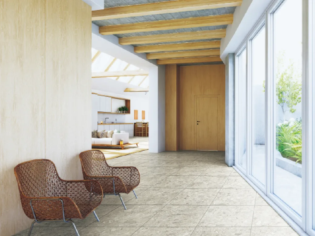 何十億年もの時を経て珊瑚礁に住む生物の遺骸などが堆積してできた自然の芸術、ライムストーンを模した「エンシエント ストーン」。石の持つ揺るぎない強さと美しさは、それら全てが今のタイルに息づいています。