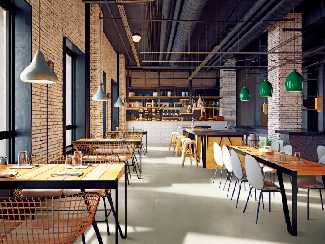 ニュートラルで心地よい色調と主張し過ぎないマットな質感で表現した石目模様は、住宅や店舗などへ広くご使用いただけます。空間のテイストを選ぶことなく、インテリアや什器を引き立てます。
