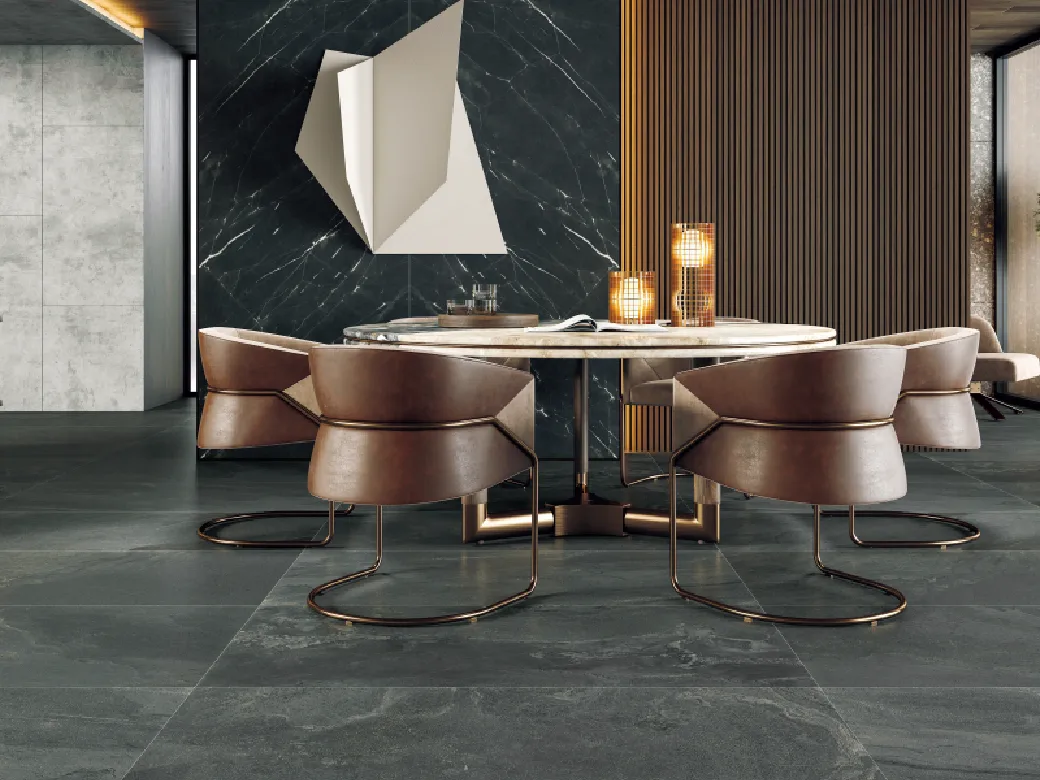 天然石に見られる葉脈、テクスチャーで、スレート(粘板岩)のような魅力を放つ「アルデシアン スレート」。自然な割れ目と深みのある表情は時の流れを優雅に刻んだ天然石のように、多彩な表情でインスピレーションを刺激します。
