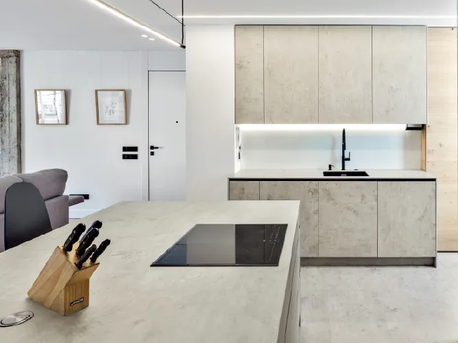 その洗練されたデザインをスマートな大判セラミックタイルで、