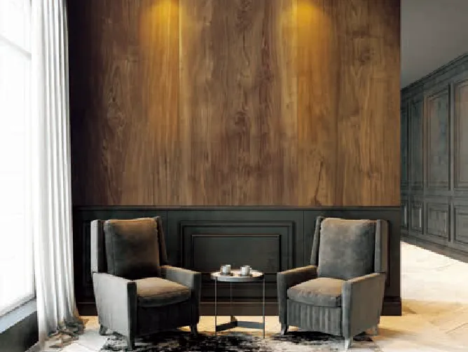 壁面、家具、エレベーター扉、柱など多くのインテリア空間にご使用いただけます。
