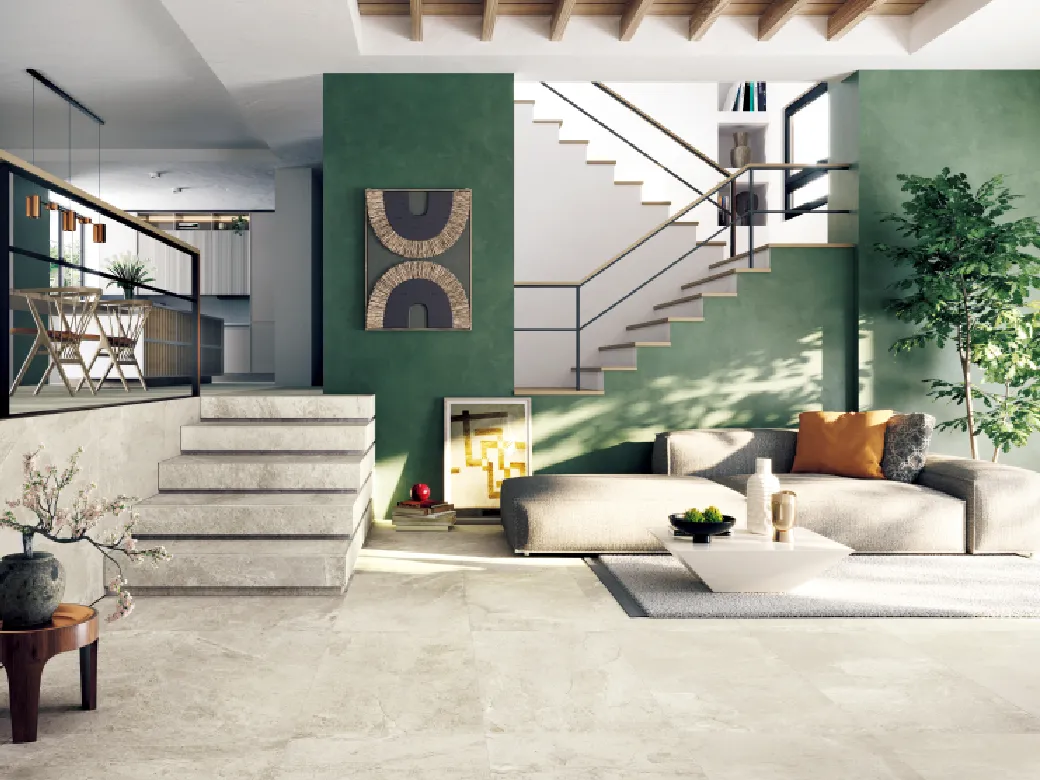古くからヨーロッパの建築に使用されているスレート(粘板岩)に着想を得て生まれた、コンテンポラリーな優雅さを演出する「エレガンツァ」。温かみを感じる安心感のある表情は、本物の天然石を思わせる美しさを実現。