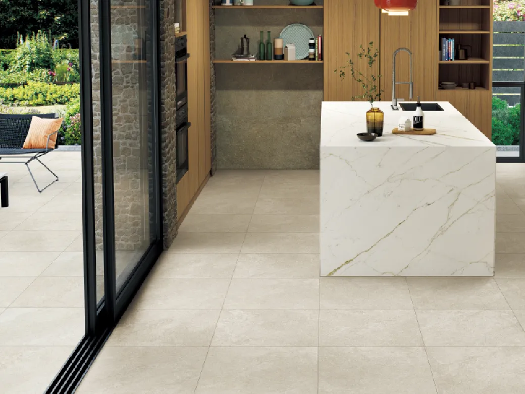 何億年もの時間をかけて地球がつくり出した石肌を忠実に再現。「ノルディック ストーン」は、珪岩に着想を得て生まれました。インとアウトをトータルに美しくつなぎ、一体感のある空間をデザインします。