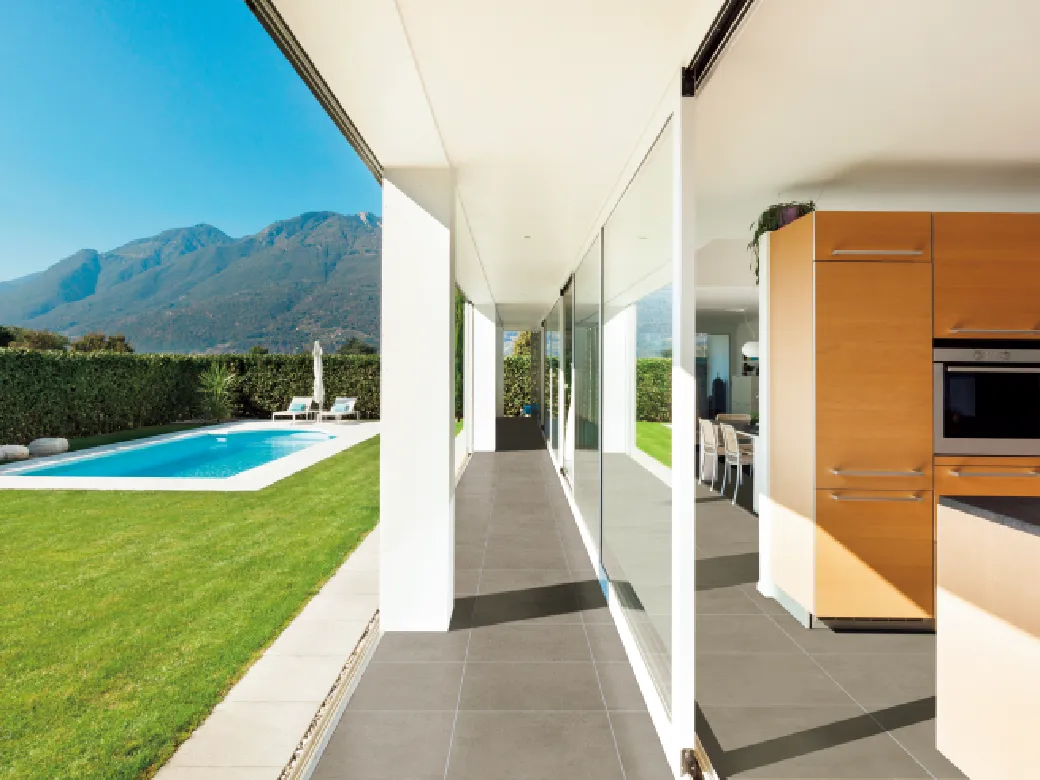 コンクリートを想起させる無機質なテクスチャーに温かみのある色彩は、ミニマルでコンテンポラリーな空間に柔らかさをプラス。マットな質感は光を包み込む穏やかな表情で、ウチとソトをシームレスにつなぎます。