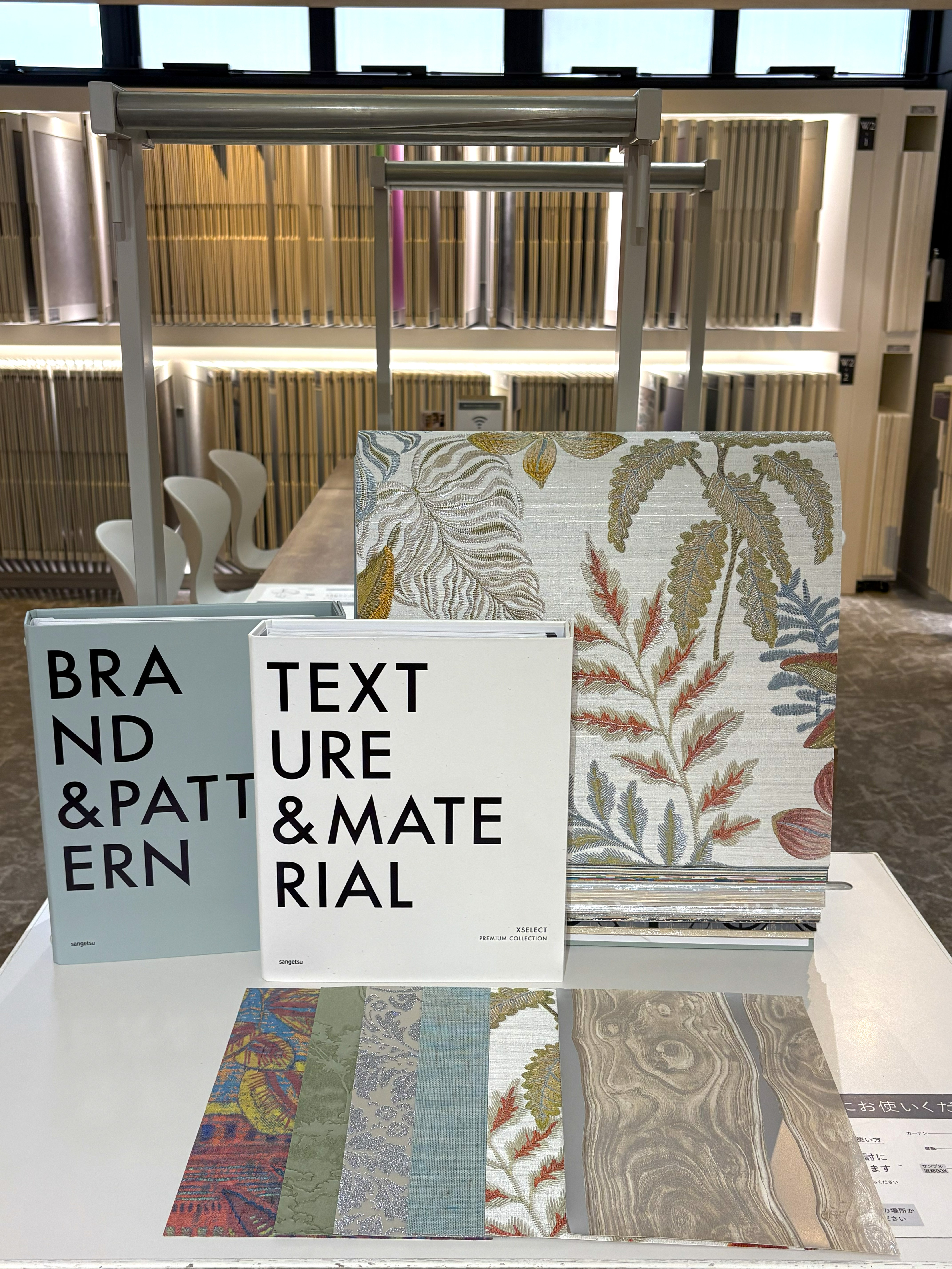 「TEXTURE &MATERIAL」「BRAND & PATTERN」8/28発刊に伴い、見本帳を入れ替えました。