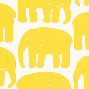 子どものころ、近所の友だちの家に遊びに行った日の思い出。かわいいゾウのカーテンがかかっていて、子ども部屋は宝ものであふれていた。ベッドから椅子へジャンプしても誰からもしかられなかった。1969年フィンレイソンと芸術デザイン大学が共演したデザインコンペでライナ・コスケラが発表したデザイン。