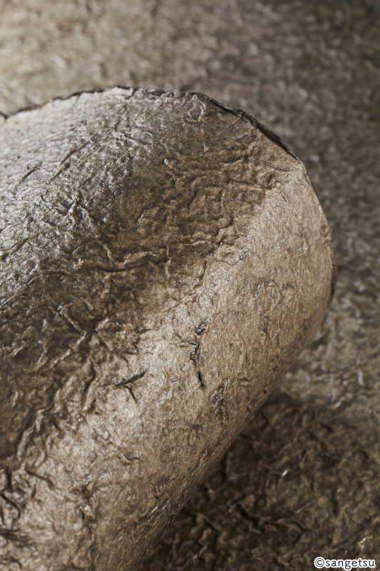 凹凸感あるロクタ紙に何度も色を塗り重ね、ムラ感のある“つぶ”の表情を表現しました。