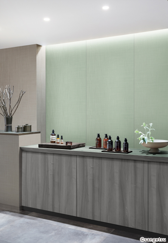 ノルディックのおおらかな自然と放牧的な空気感を持つ普遍的で洗練された表情を持つ壁紙です。安らぎと温もりを感じる北欧モダンなカラーリングとしました。