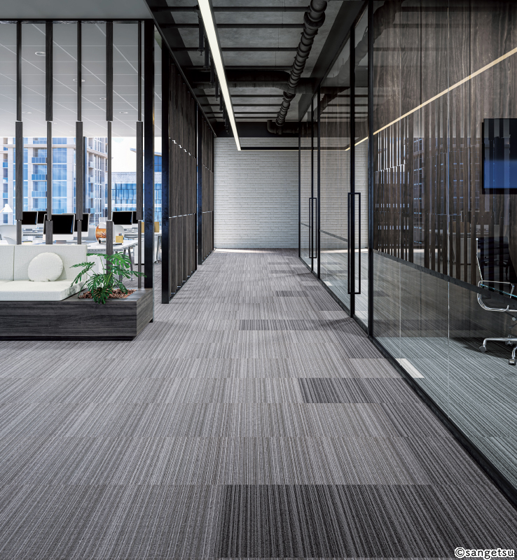 ランダムなストライプが空間にメリハリとアクセントを与えます。