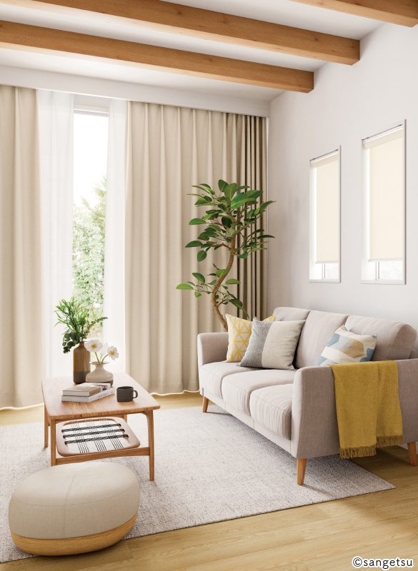 コットンライクな素材感が魅力の商品です。カーテンや壁紙とのコーディネートを楽しんでいただけます。