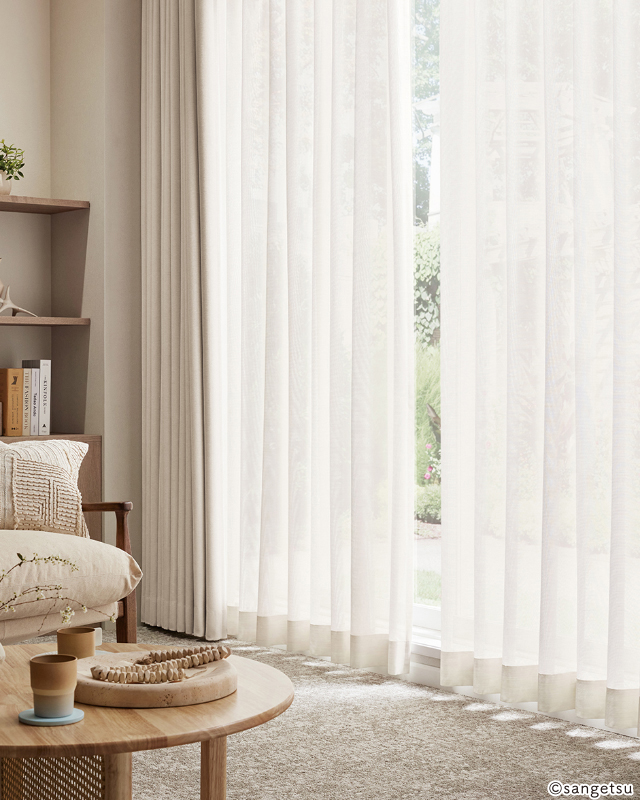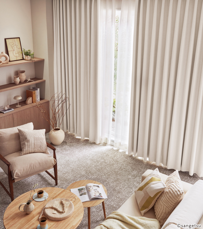 色糸の濃淡とさりげない光沢の全点遮光1級カーテン。